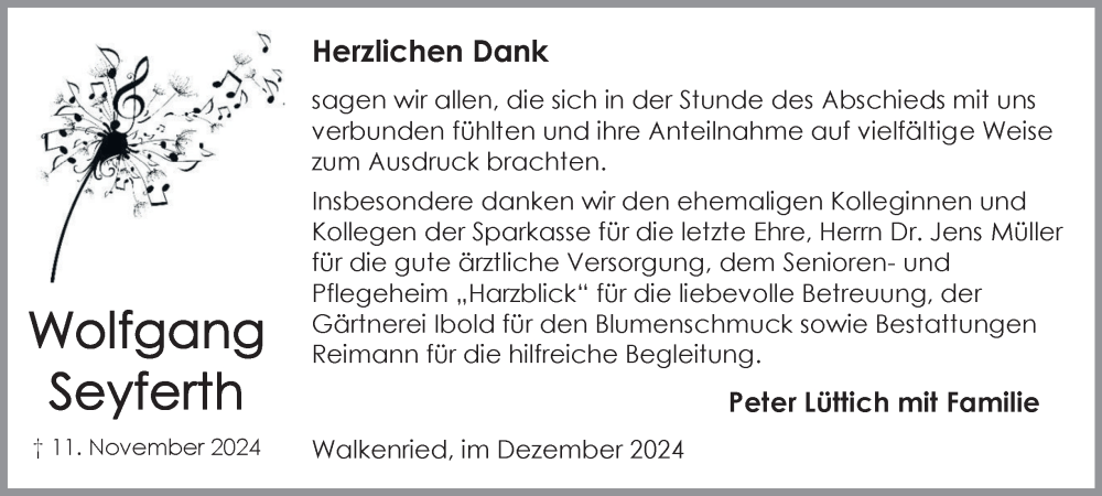 Hier finden Sie alle Traueranzeigen aus der Zeitung, die bisher für Wolfgang Seyferth erschienen sind. Weitere Traueranzeigen, die in der Zeitung erscheinen, werden hier ebenfalls aufgelistet
